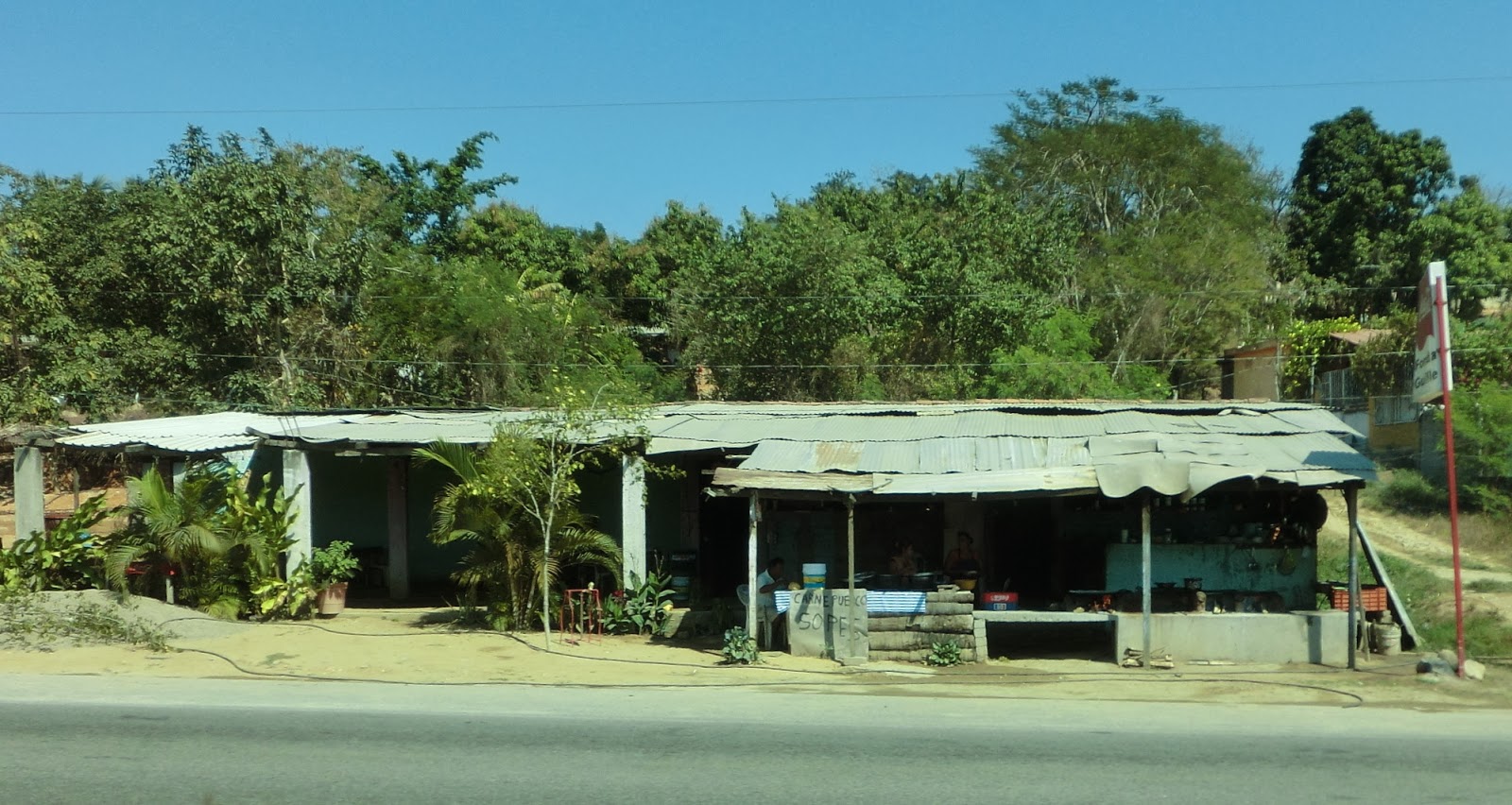 In Nexpa we make the mistake of not calling it a day yet but continuing on to the bigger town of Caleta de Campos. There are more shopping possibilities in Caleta but the place itself is pretty shabby and the choices to stay for the night are catastrophic: